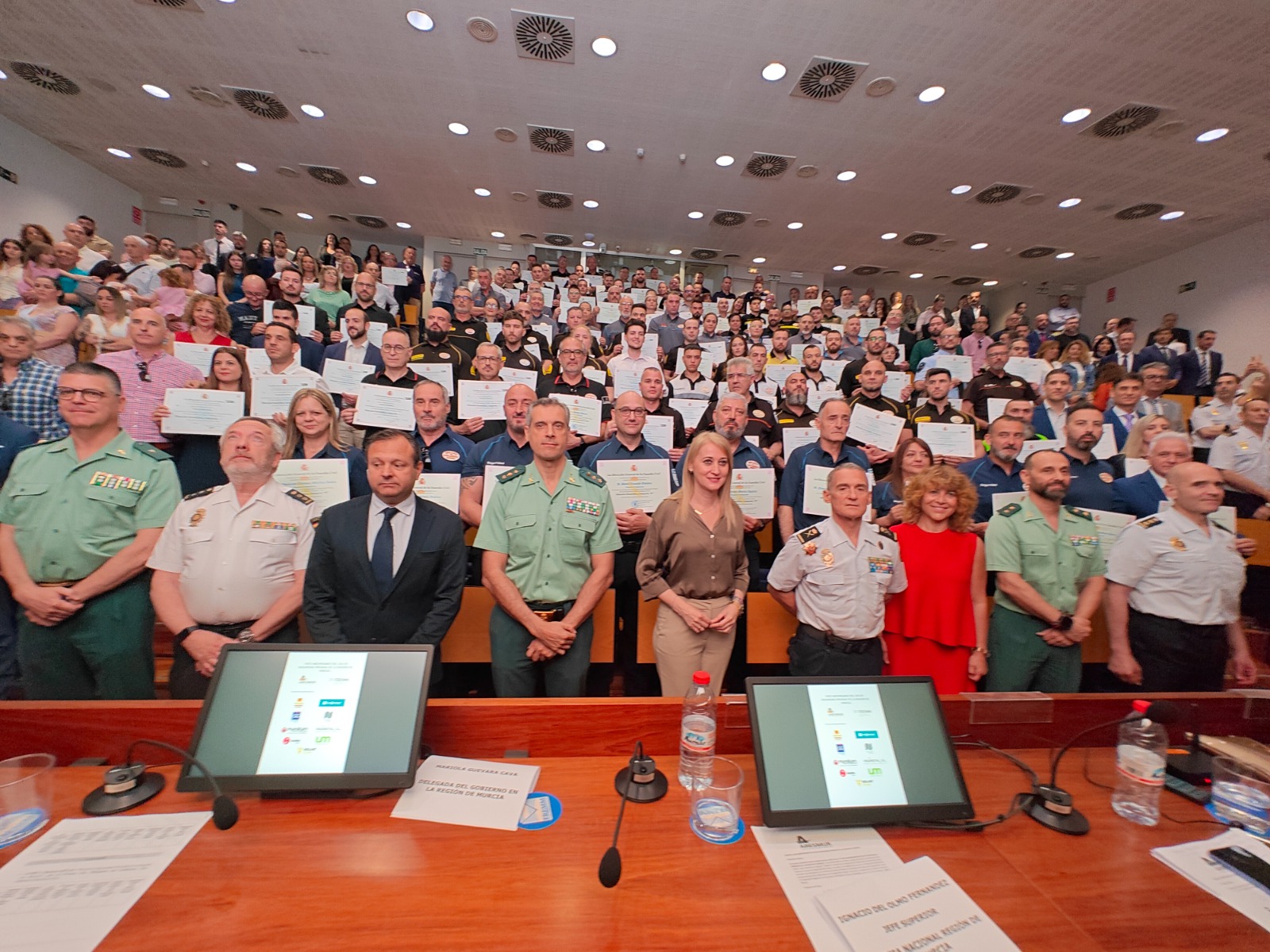 Durante la entrega de distinciones, se contó con la presencia de autoridades como el coronel jefe de la 5ª Zona de la Guardia Civil de Murcia, Francisco Pulido Catalán, y el jefe superior de Policía de Murcia, Ignacio del Olmo Fernández, junto a familiares y representantes institucionales.