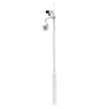 Incluye un tramo de base, un tramo de instalación, un tramo de extensión, un soporte para cámara bullet, un soporte para domo PTZ, un pararrayos y jaula de cimentación